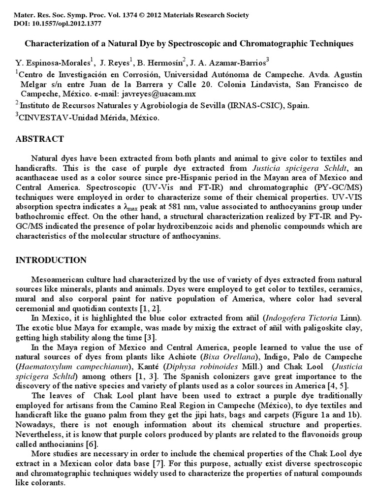 Characterization of a Natural Dye by Spectroscopic and Chromatographic Techniques