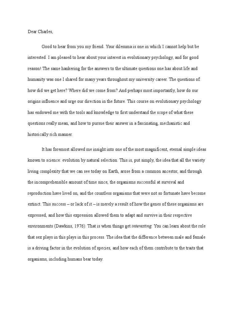 interested. I am pleased to hear about your interest in evolutionary psychology, and for good