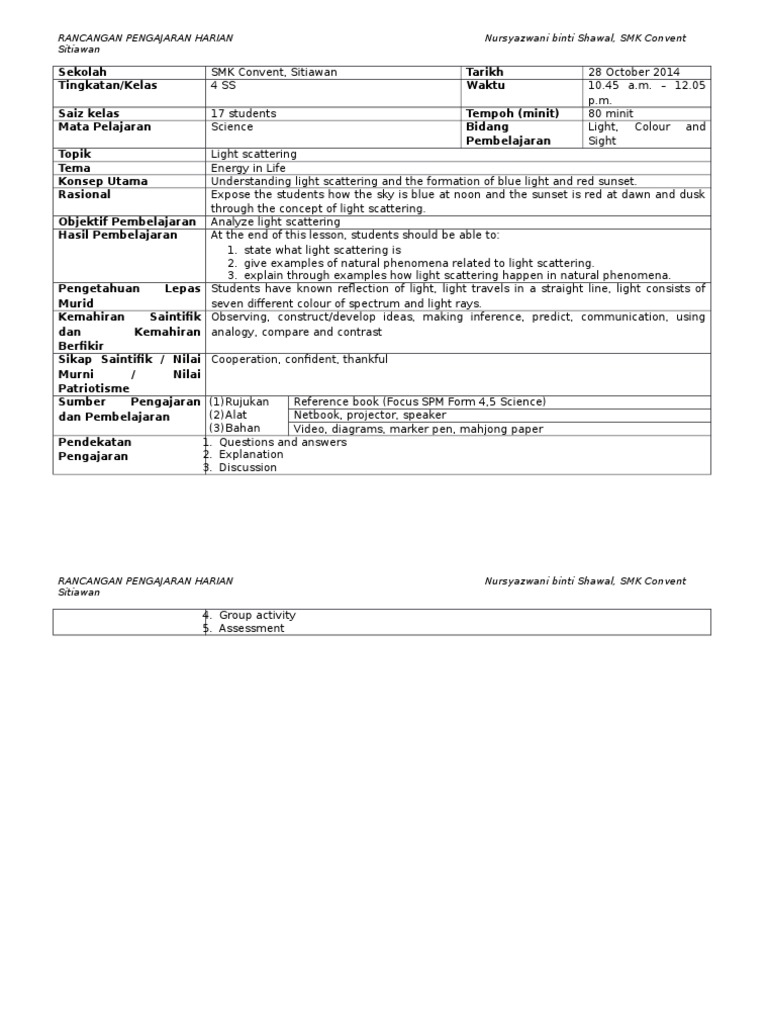 RANCANGAN PENGAJARAN HARIAN