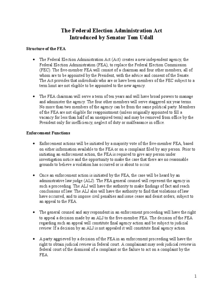 The Federal Election Administration ActIntroduced by Senator Tom Udall
