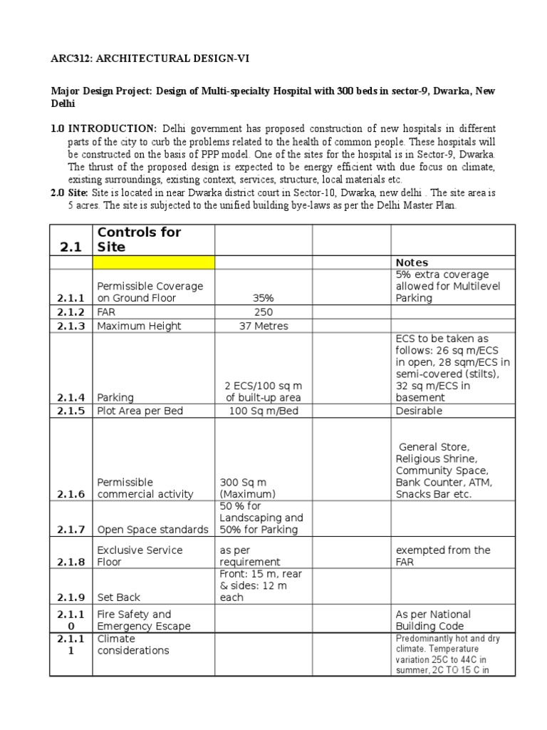 Major Design Project: Design of Multi-specialty Hospital with 300 beds in sector-9, Dwarka, New