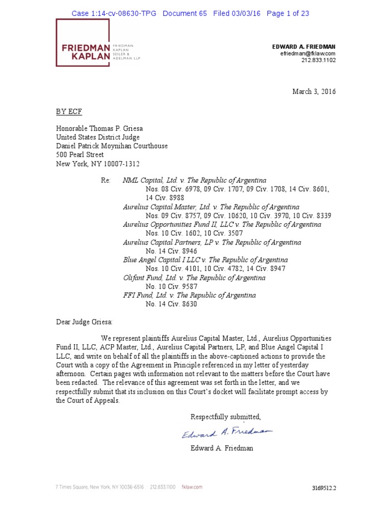 Dear Judge Griesa: