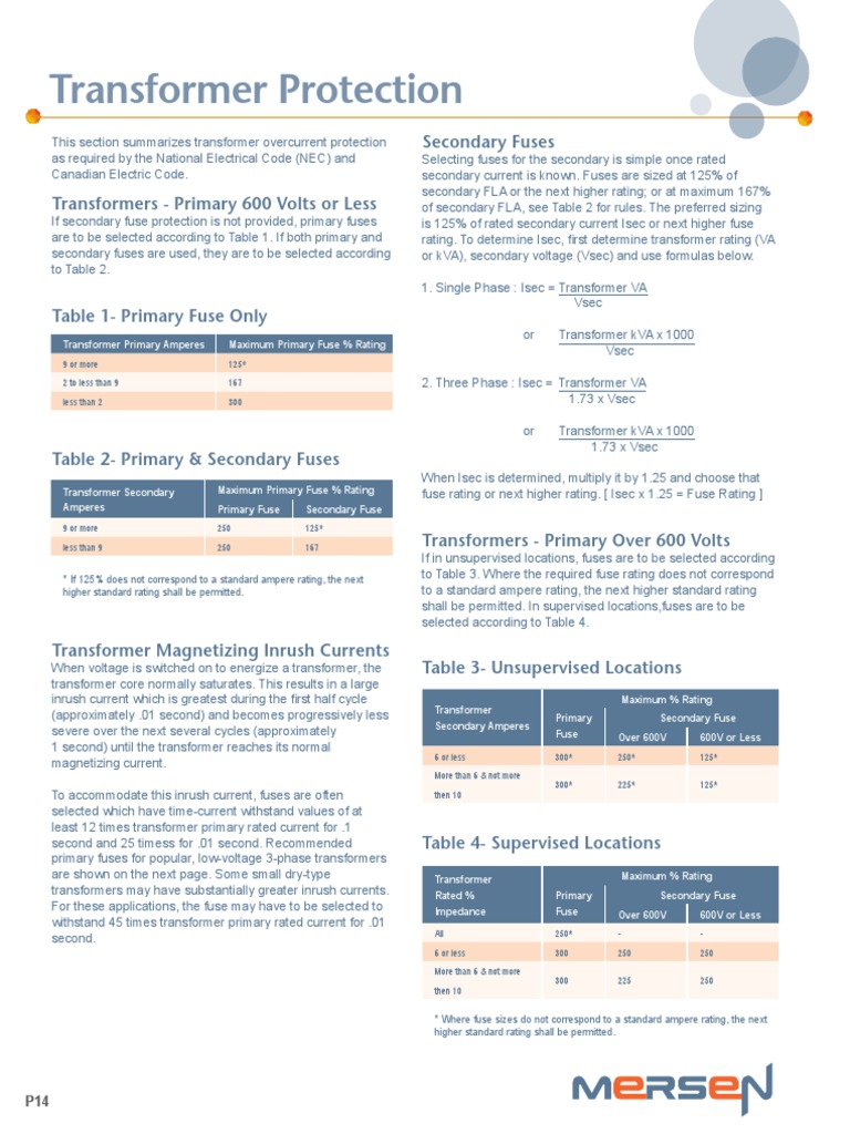 This section summarizes transformer overcurrent protection