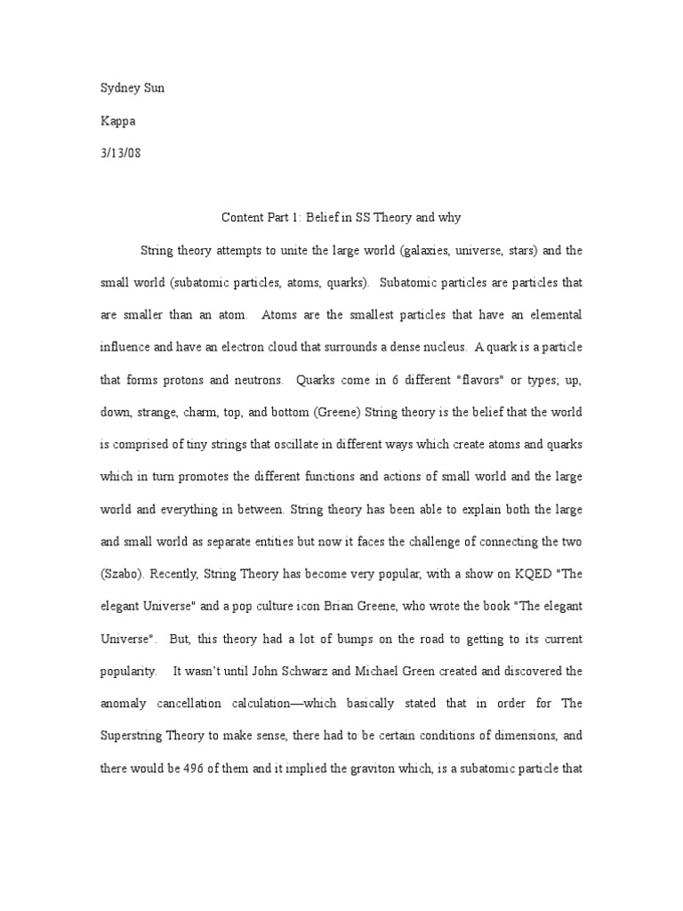 (Szabo). Recently, String Theory has become very popular, with a show on KQED "The