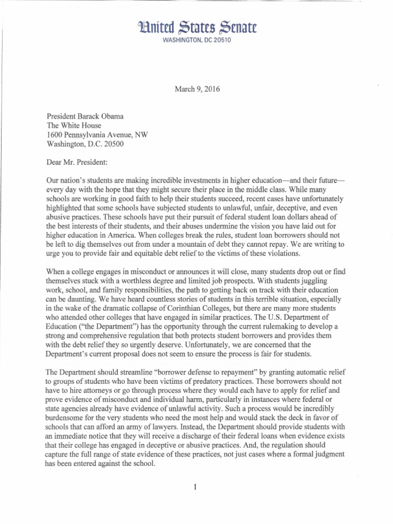 would be unfair to set an arbitrary time limit on a student's ability to get the relief they deserve after being taken advantage of. As your Administration works on these proposed regulations, we hope that you will keep in mind students who are struggling every day