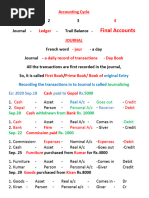 Journal Entries for the month of