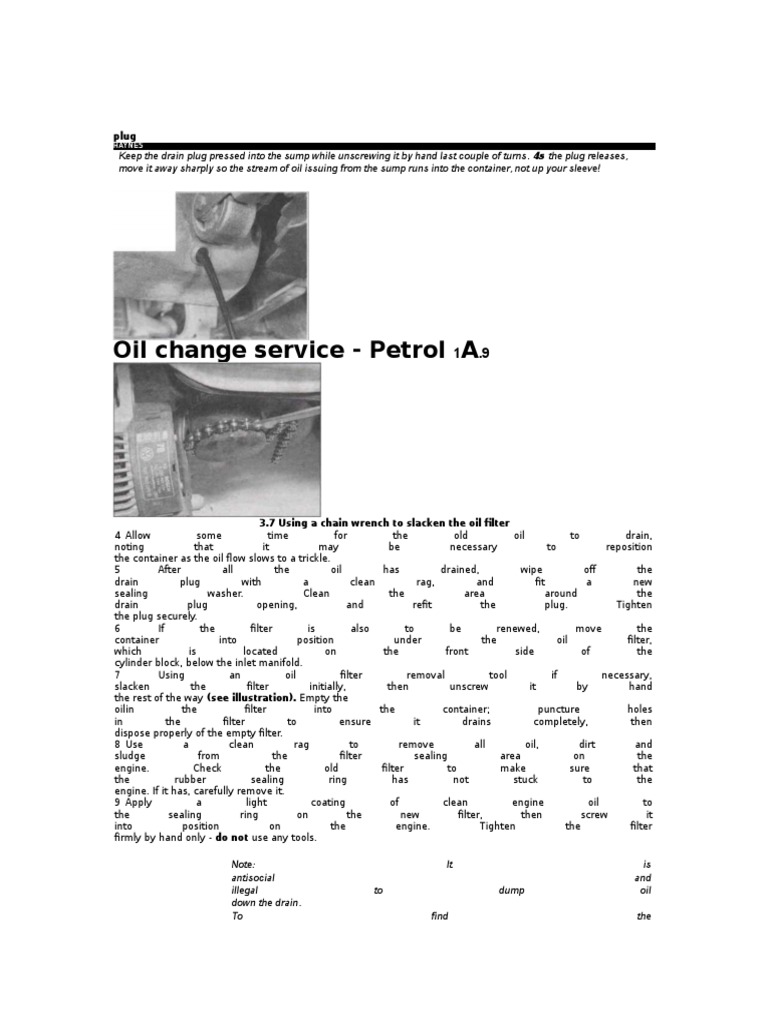 Dispose of the used engine oil and filter safely, with reference to General repair procedures" in the