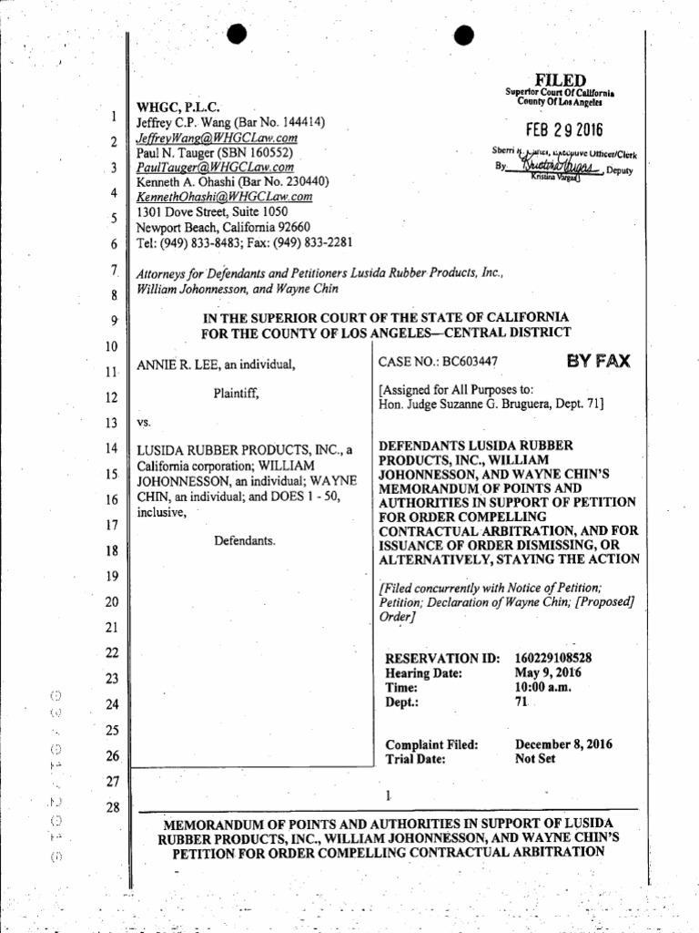 Save Lee v. Lusida: Memo to compel arbitration For Later