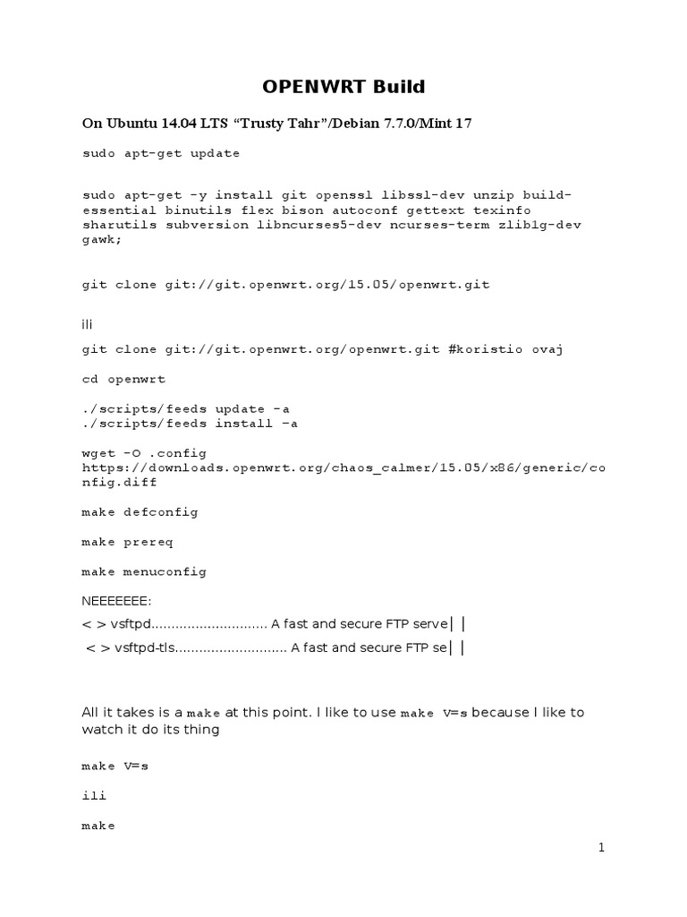 OpenWrt Downloads page. I'm compiling OpenWrt 15.05 for the X86, and here is that config.