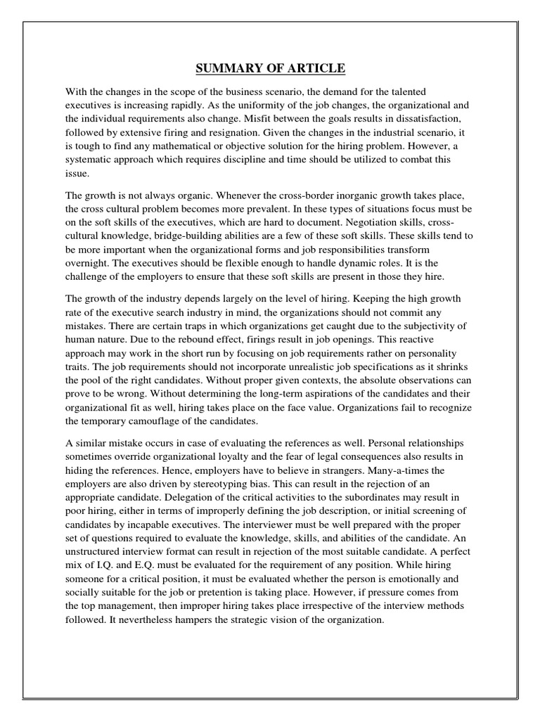 SUMMARY OF ARTICLE