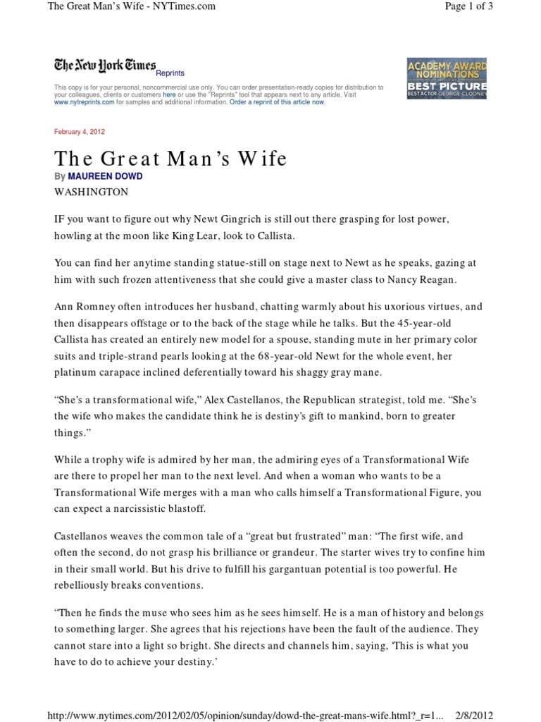 The Great Mans Wife - NYTimes.