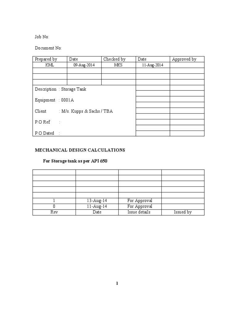 For Storage tank as per API 650