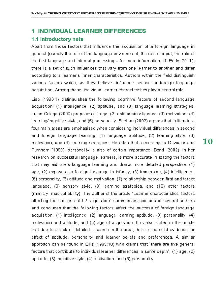 Eva Eddy: ON THE INVOLVEMENT OF COGNITIVE PROCESSES IN THE ACQUISITION OF ENGLISH GRAMMAR BY SLOVAK LEARNERS