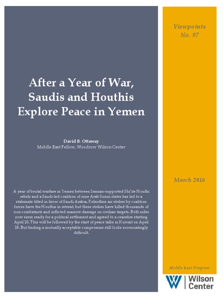 rebels and a Saudi-led coalition of nine Arab Sunni states has led to a stalemate tilted in favor of Saudi Arabia. Relentless air strikes by coalition forces have the Houthis in retreat, but these strikes have killed thousands of non-combatants and inflicted massive damage on civilian targets. Both sides now seem ready for a political settlement and agreed to a ceasefire starting April 10. This will be followed by the start of peace talks in Kuwait on April 18. But finding a mutually acceptable compromise still looks excruciatingly difficult.