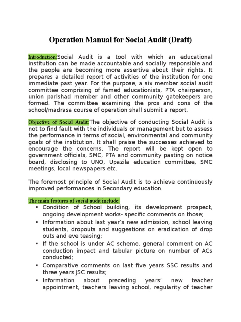 Operation Manual for Social Audit (Draft)