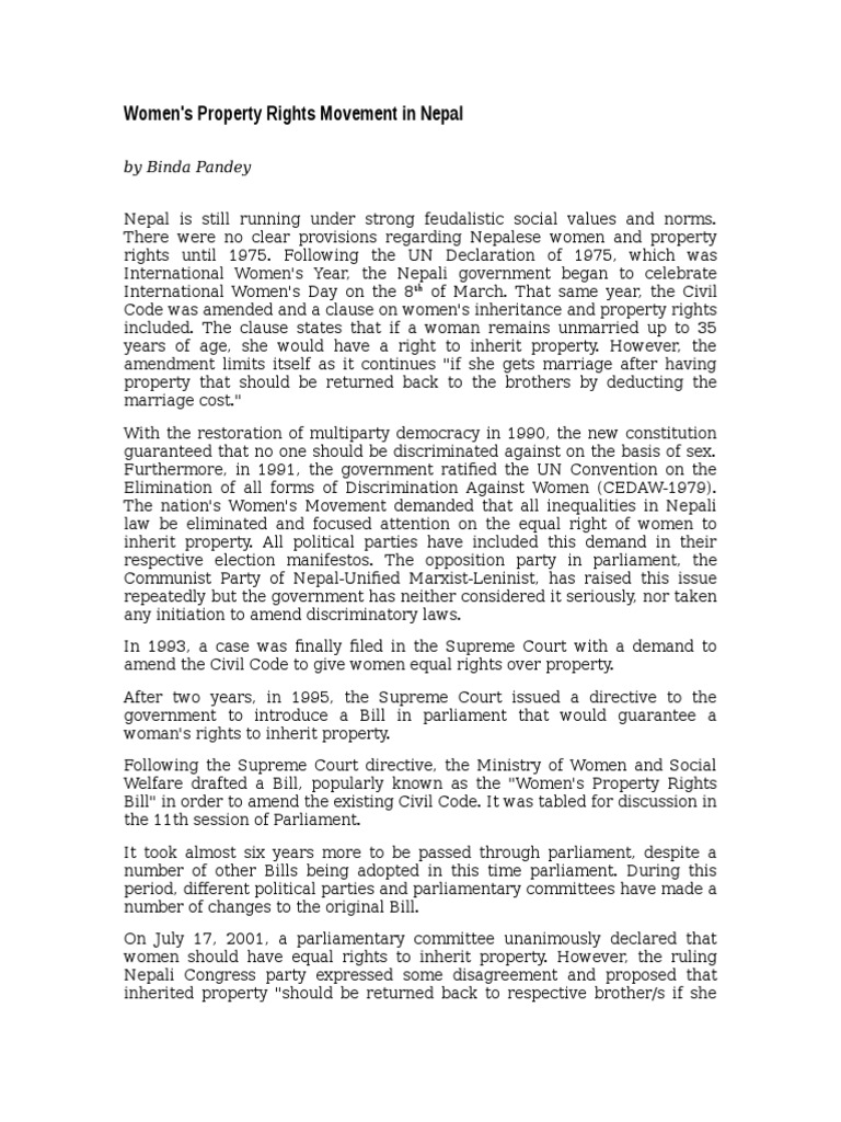 The nation's Women's Movement demanded that all inequalities in Nepali