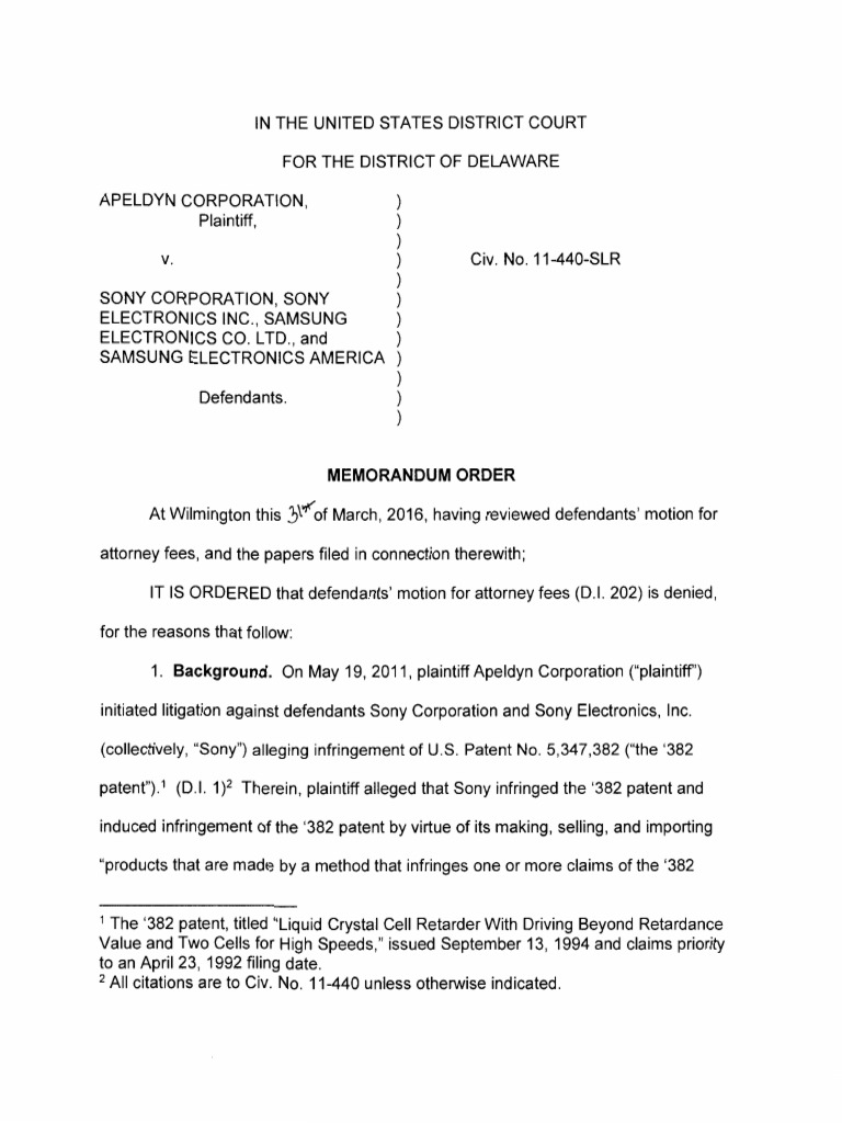 1. Background. On May 19, 2011, plaintiff Apeldyn Corporation ("plaintiff')