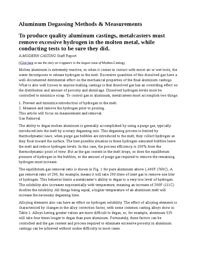 Aluminum Degassing Methods & Measurements