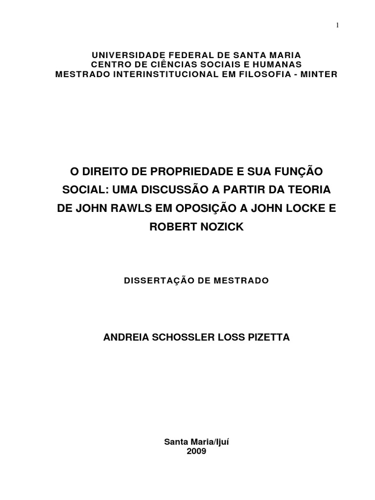 Palavras-chave: Direito de Propriedade. Funo social da propriedade. J. Rawls. J.