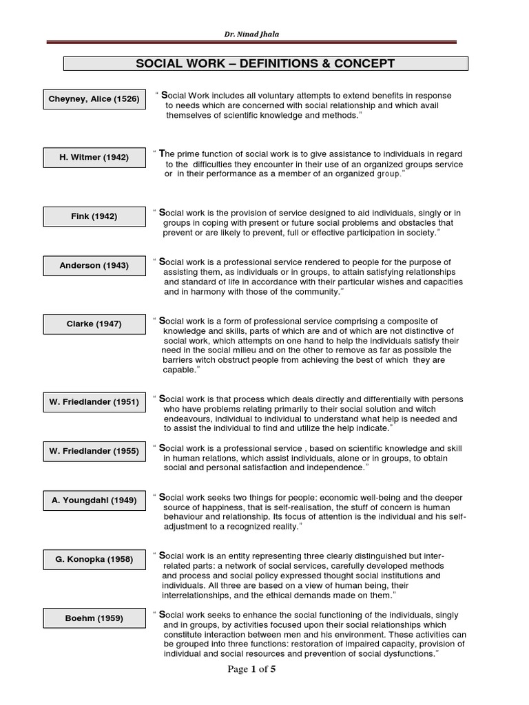 as : "Social work is a specialized kind of work - honorary or paid, done by making use of