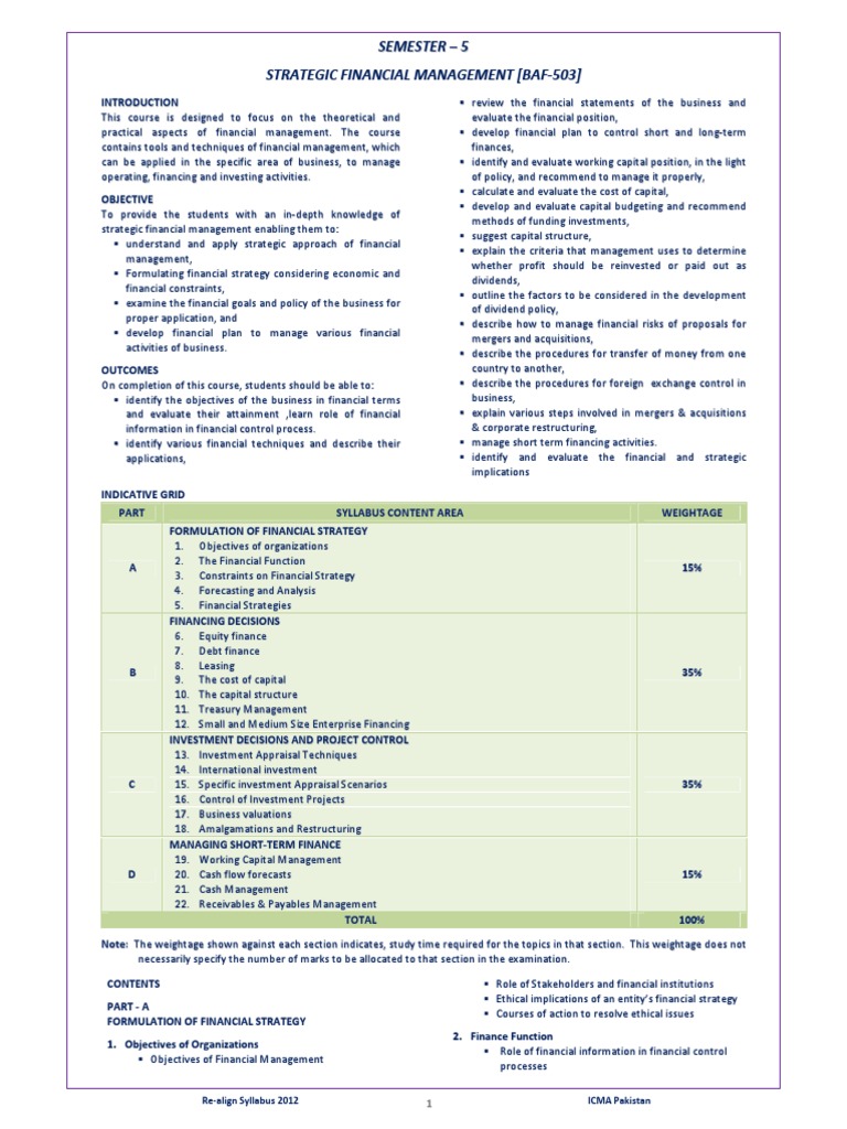 STRATEGIC FINANCIAL MANAGEMENT [BAF-503]