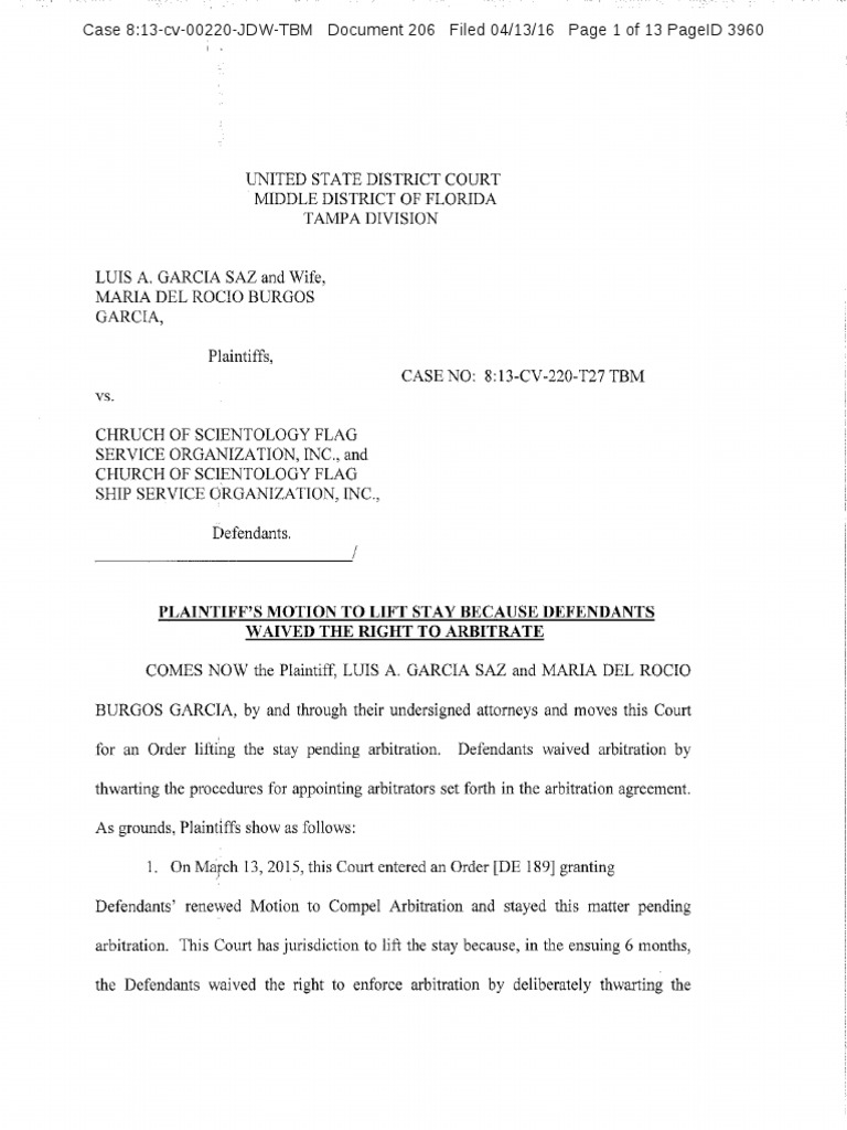 Garcia v. Scientology: Motion To Lift Stay