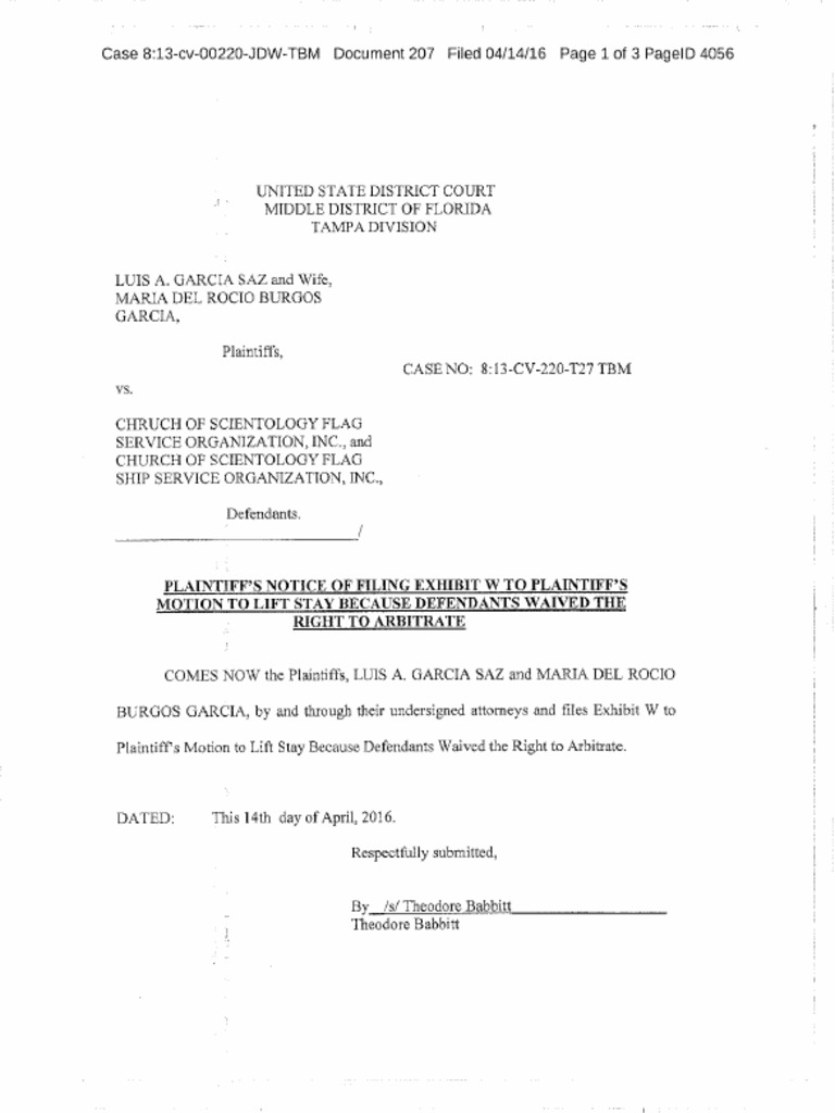 Garcia v. Scientology: Motion To Lift Stay, Exhibit W