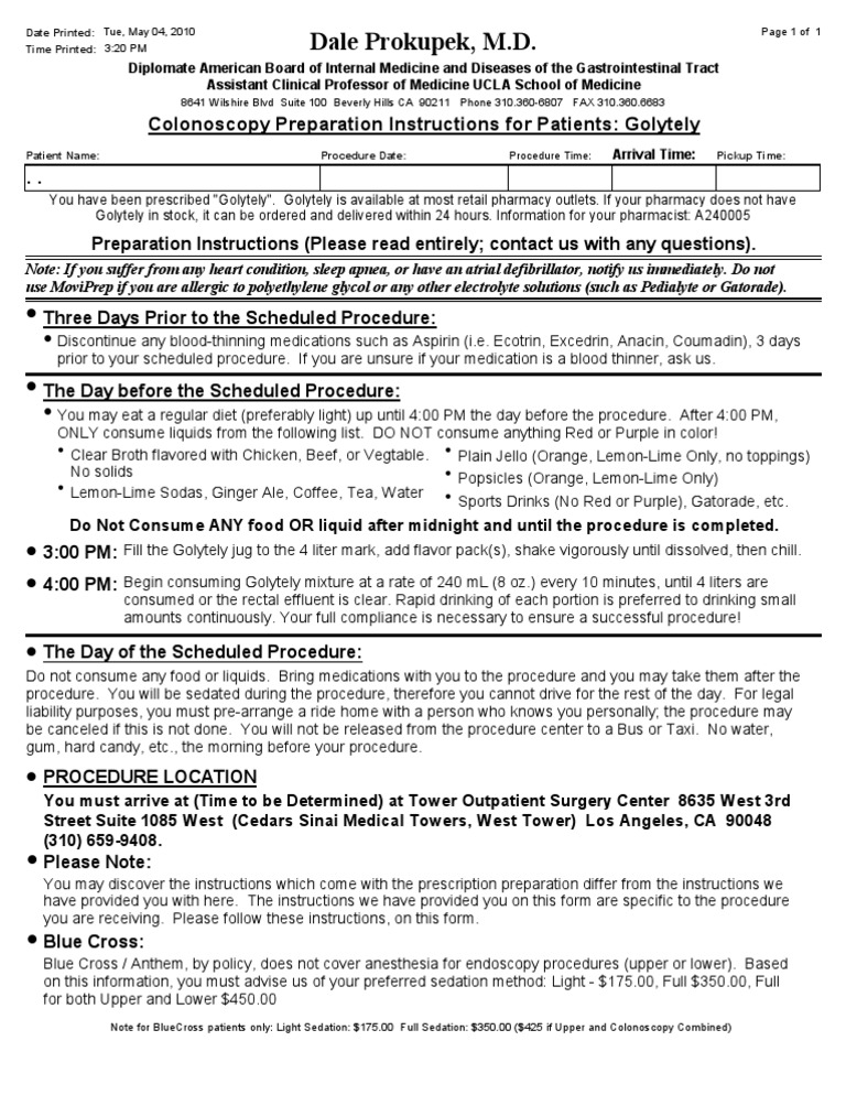 Colonoscopy Preparation Instructions for Patients: Golytely