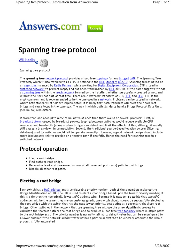 Protocol, which is also referred to as STP, is defined in the IEEE Standard 802.1D. Spanning tree is based on
