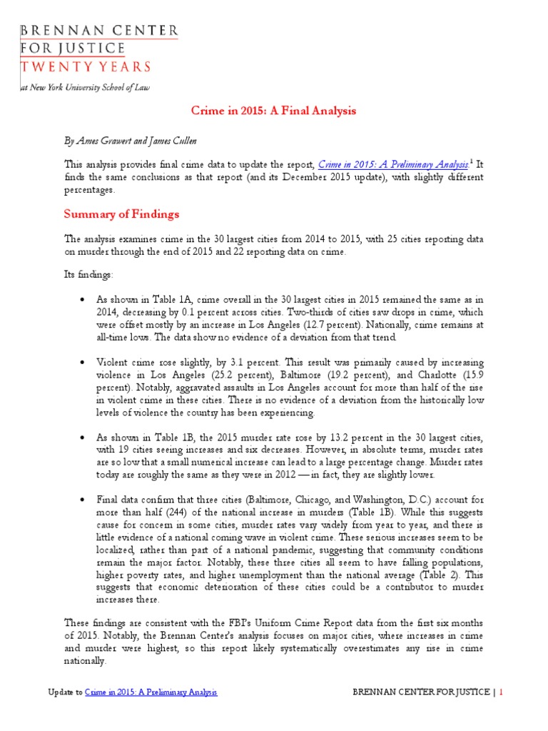of 2015. Notably, the Brennan Centers analysis focuses on major cities, where increases in crime