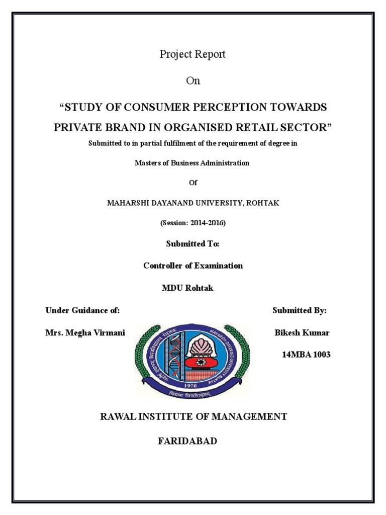 PERCEPTION TOWARDS PRIVATE BRAND IN ORGANISED RETAIL