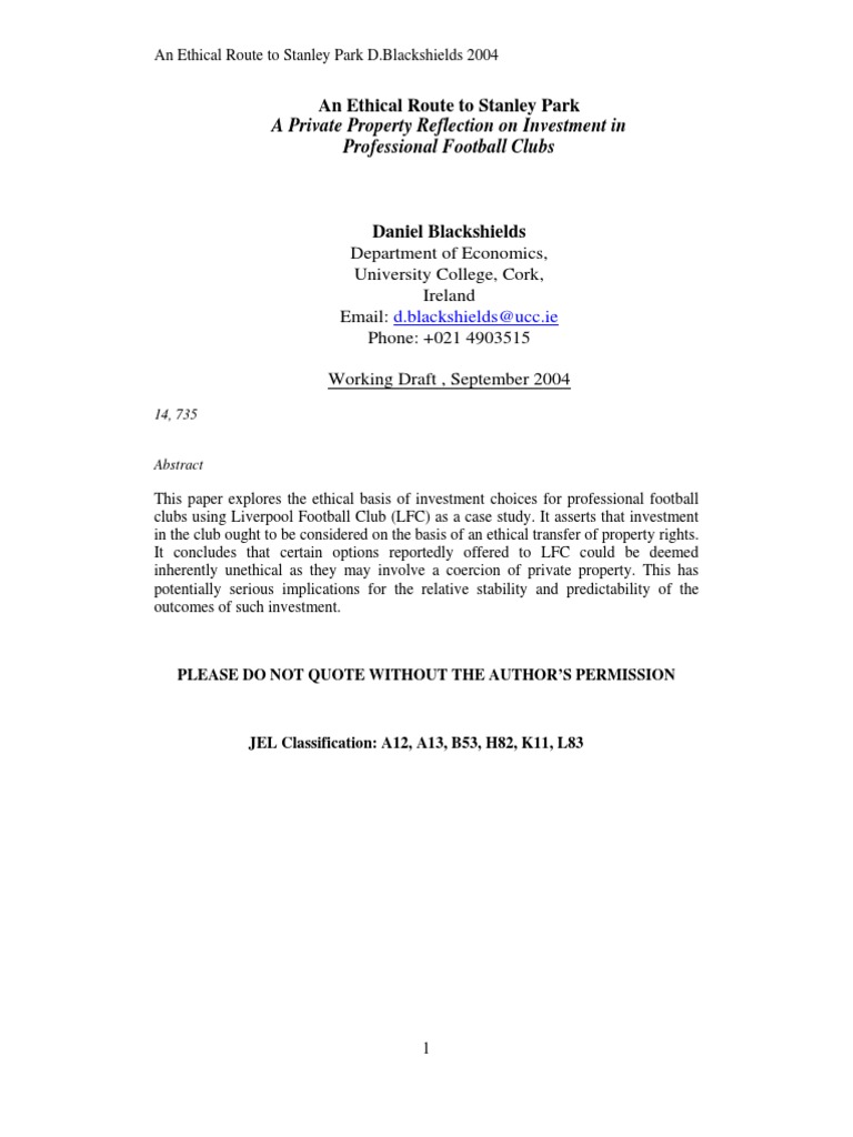 and Trusts In: Hamil, Michie, and Oughton (eds) A Game of Two Halves? The Business of Football