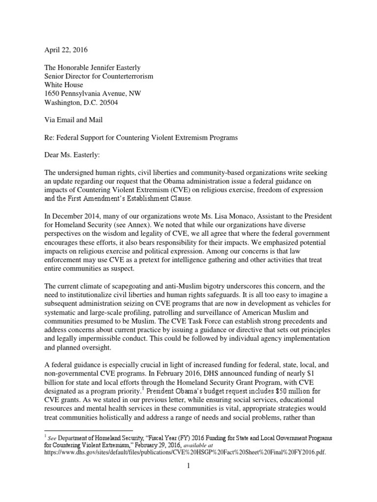 White House Guidance on CVE: The White House should immediately issue guidance