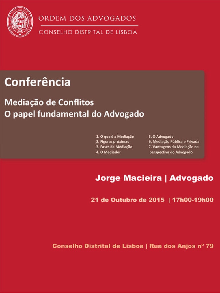 Conferncia Mediao de Conflitos o papel fundamental do Advogado