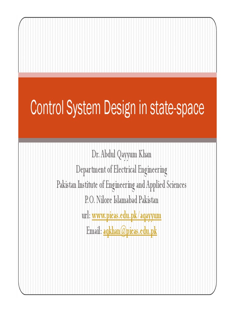 state. This scheme is referred to as state feedback control and the matrix K pn is called feedback gain.