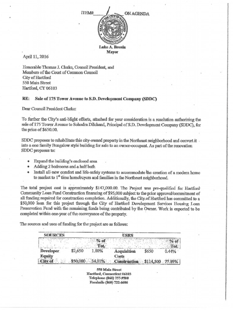 Bronin Dilchand Resolution 175 Tower Ave.