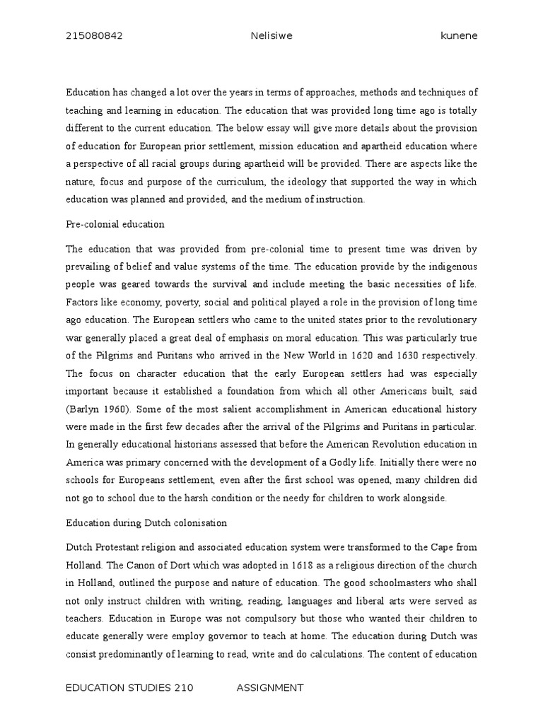 prevailing of belief and value systems of the time. The education provide by the indigenous
