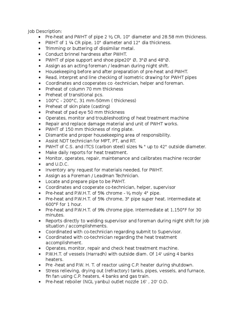 Operate, repair, monitor, maintenance, cooperheat or heat treatment