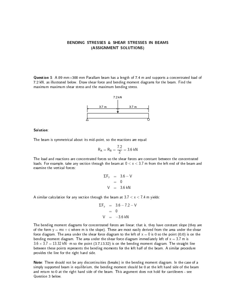Question 1: A 89 mm300 mm Parallam beam has a length of 7.4 m and supports a concentrated load of