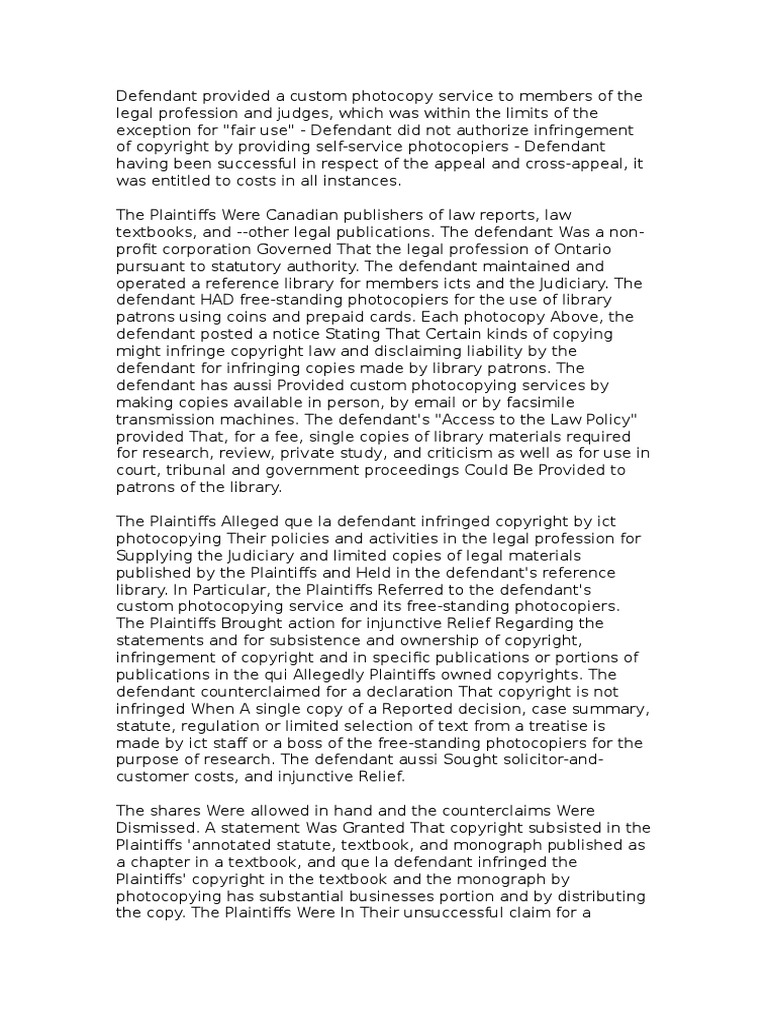 The Plaintiffs Were Canadian publishers of law reports, law