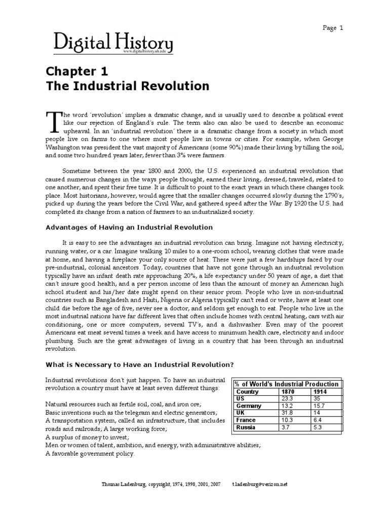 upheaval. In an industrial revolution there is a dramatic change from a society in which most