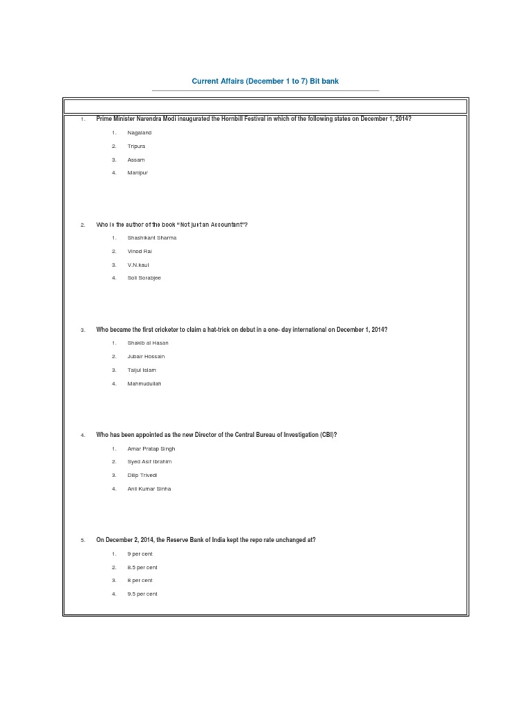 Current Affairs (December 1 to 7) Bit bank