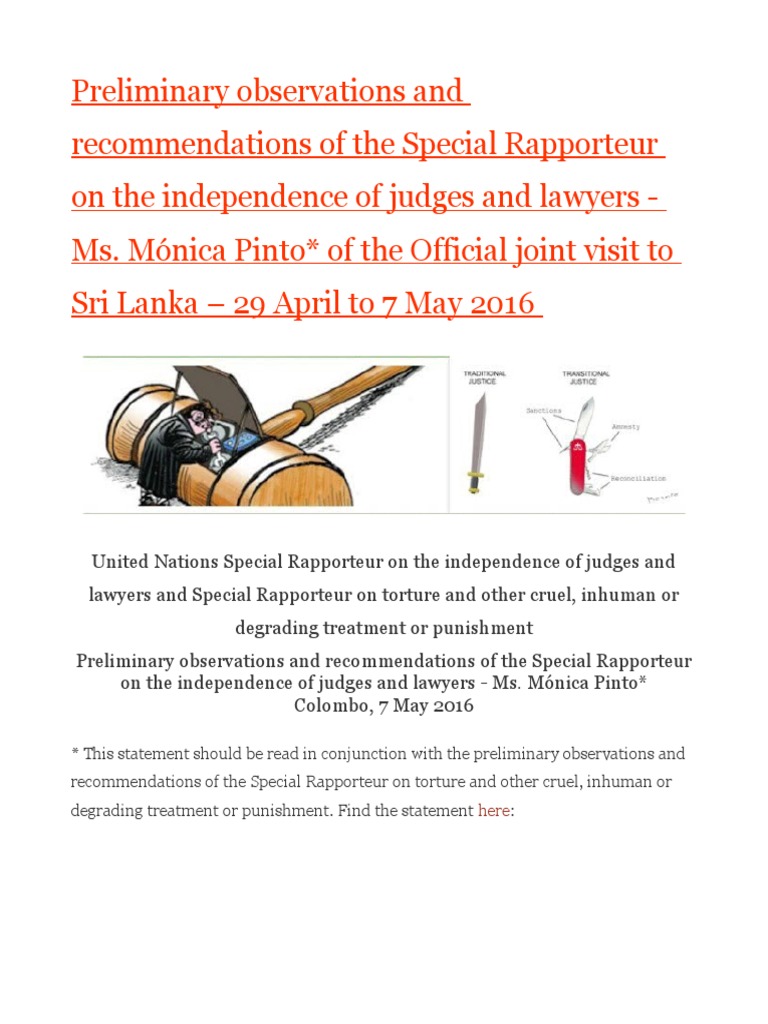 punishment and I visited Sri Lanka from 29 April to 7 May 2016 to assess the
