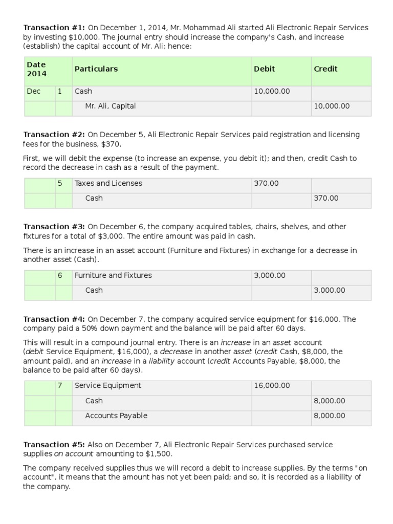 Transaction #2: On December 5, Ali Electronic Repair Services paid registration and licensing