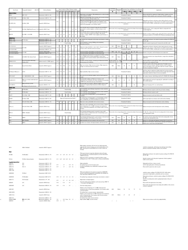 Steel Grade Comparable Standard AISI / JIS Delivery Hardness Characteristics Temperature/ Applications