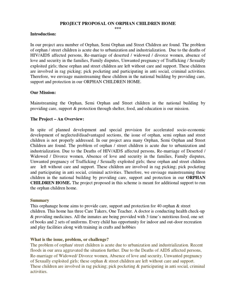 PROJECT PROPOSAL ON ORPHAN CHILDREN HOME