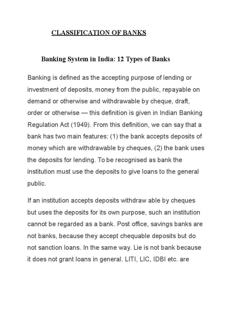 Commercial Banks, Industrial Banks, Agricultural Banks.