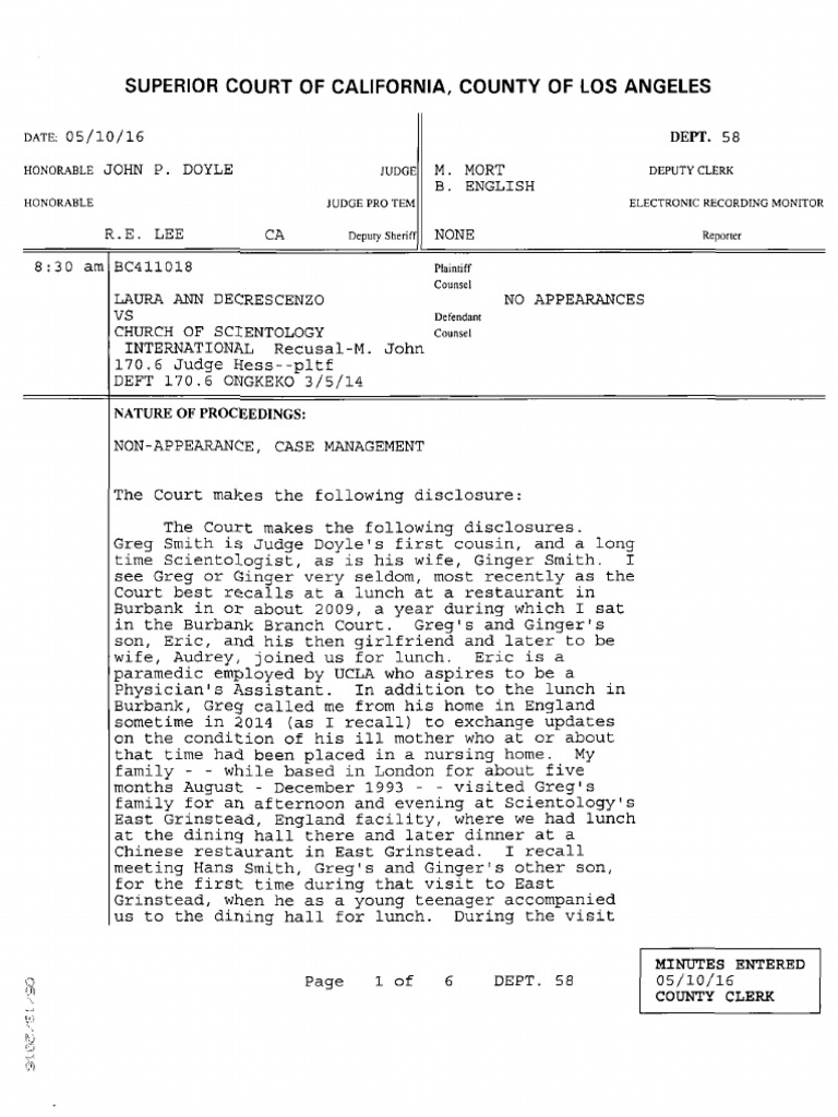 DeCrescenzo v. Scientology: Judge Doyle Disclosure