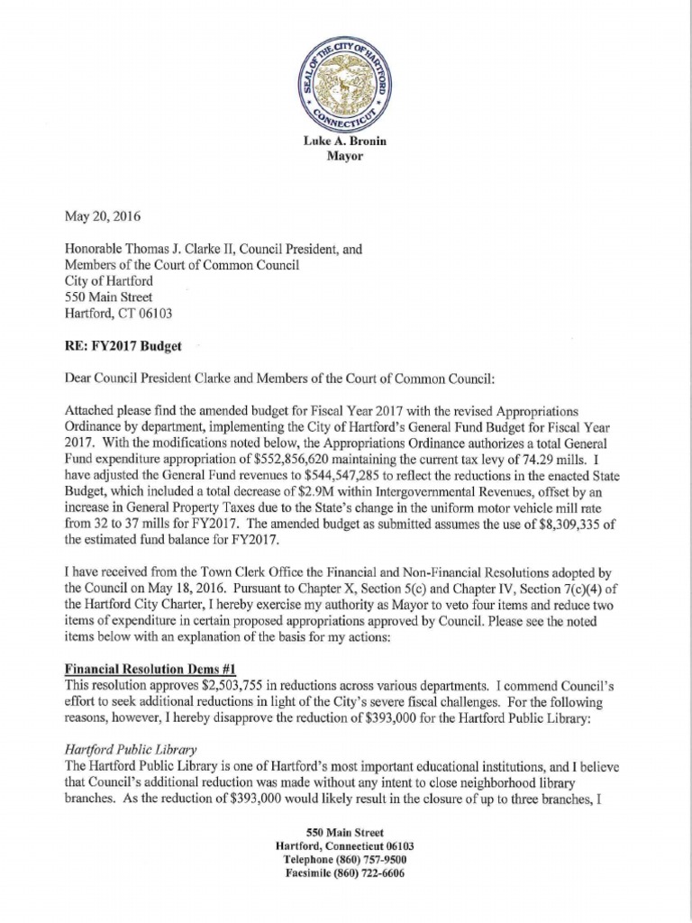 FY2017 Amended Budget Transmittal