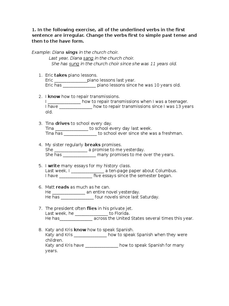 sentence are irregular. Change the verbs first to simple past tense and